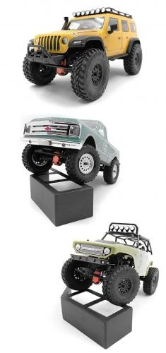 Shown installed on Axial SCX24 1/24 Jeep Wrangler RTR, Axial SCX24 1/24 Chevrolet C10 RTR and Axial 1/24 SCX24 Deadbolt 4WD RTR respectively for example (Not Included)